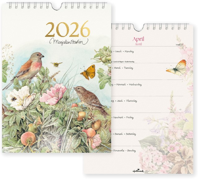 Deze Hallmark Marjolein Bastin weekkalender heeft een formaat van 165 x 230 mm. De designs van Marjolein Bastin zijn zo gedetailleerd, dat haar tekeningen soms levensecht lijken. De bekende natuurtekenares focust zich op de kleine dingen, zoals de details van bloemen, insecten of vogels. Haar tekeningen zijn wereldberoemd en heel herkenbaar dankzij Marjoleins verfijnde signatuur. De sfeervolle natuurtekeningen van Marjolein Bastin sieren de nieuwe agenda’s en kalenders voor 2026.