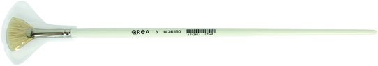 Waaierpenseel Qrea varkenshaar nr. 3 – Ø 35mm De waaiervormige penseel van Qrea is een effectief instrument voor kunstenaars die werken met olie- of acrylverf. Dankzij de natuurlijke varkensharen biedt dit penseel een onzichtbare verfopname en uitstekende spreiding, ideaal voor het creëren van fijne structuren en zachte overgangen. De lange, witte houten steel ligt comfortabel in de hand en zorgt voor nauwkeurige controle tijdens het schilderen. Door de hoge elasticiteit en vormvastheid is de penseel kwaliteit, zelfs bij intensief gebruik. Kenmerken: