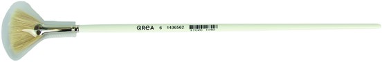 Waaierpenseel Qrea varkenshaar nr. 6 – Ø 45mm De waaiervormige penseel van Qrea is een effectief instrument voor kunstenaars die werken met olie- of acrylverf. Dankzij de natuurlijke varkensharen biedt dit penseel een onzichtbare verfopname en uitstekende spreiding, ideaal voor het creëren van fijne structuren en zachte overgangen. De lange, witte houten steel ligt comfortabel in de hand en zorgt voor nauwkeurige controle tijdens het schilderen. Door de hoge elasticiteit en vormvastheid is de penseel kwaliteit, zelfs bij intensief gebruik. Kenmerken: