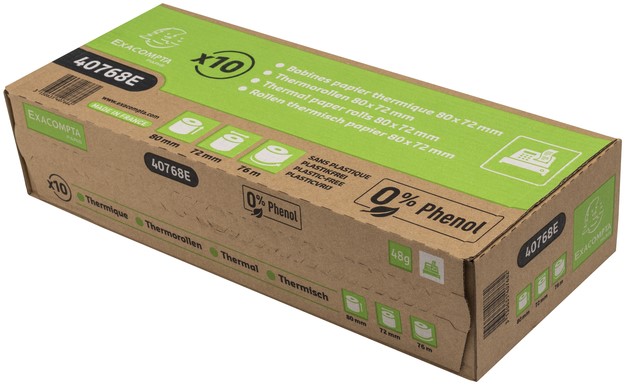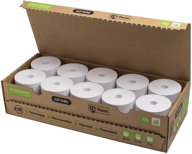 1 laag thermisch papier 48g/m2 fenol- en plasticvrij.