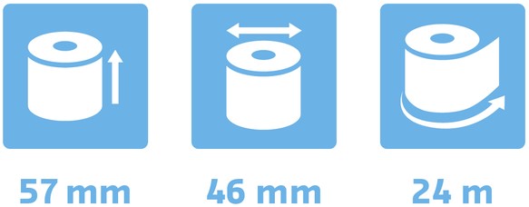 Afmetingen rol: breedte 57mm, diameter 46mm, lengte (+/- 2m) 24m.