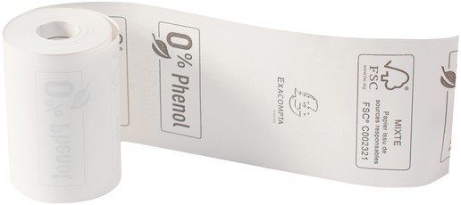 Gegarandeerd fenolvrij papier, dwz zonder bisfenol A, maar ook zonder bisfenol S.