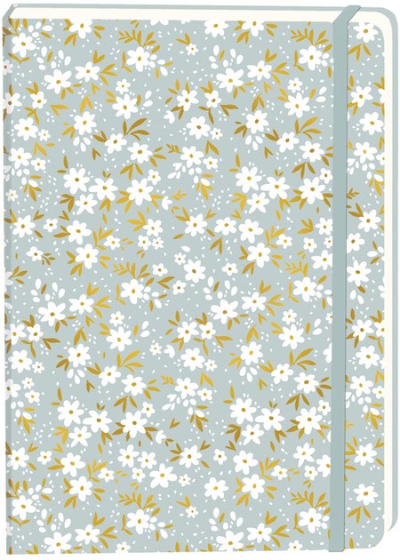 Notitieboek witte bloemen A5 lijn 92 pagina's softcover grijs