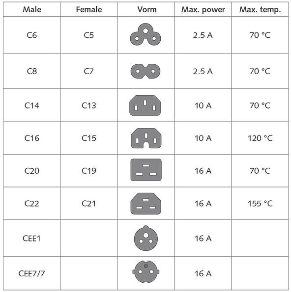Connectoren: Schuko CEE 7/7 male (haaks) - C13 IEC 60320.