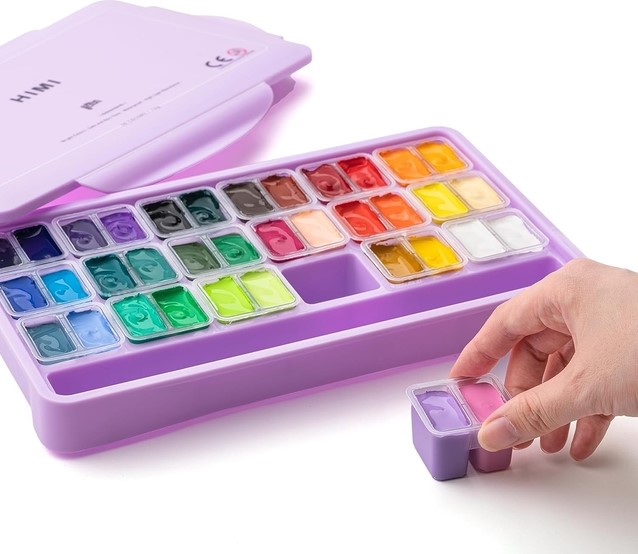 De gouache set met 36 unieke opvallende levendige gouache kleuren biedt je een uitstekende selectie van levendige kleuren om je kunstwerk tot leven te brengen, ideaal voor professionele kunstenaars, jonge aspirant-kunstenaars, schilderliefhebbers, tieners en kinderen. Verbeterd en uniek ontwerp met Twin split cups met uitstekend afdichtingsdeksel houdt je gouache-verf nat en romig voor je prachtige schilderwerkjes, draagbaar formaat, gemakkelijk mee te nemen, perfect om binnen of buiten te leren schilderen. Elke kleur heeft een inhoud van 12 gram (ca. 12ml). En heeft een fantastische dikke consistentie die penseel- of spatelafdrukken zal vasthouden en je werk schitterende textuur zal geven. Gemaakt van milieuvriendelijk verfmateriaal met de certificeringen ACMI, EN71-3 en EN71-9. De gouache-verf van deze set heeft rijke pigmenten, is romig, niet giftig en wasbaar. Geschikt voor kunstenaars, volwassenen, tieners en kinderen. De verf zal niet barsten of afbrokkelen wanneer ze droog is en kan worden gereactiveerd met water. De nieuwe gouache-verfset wordt geleverd met een eenvoudig palet en kleurenkaart.