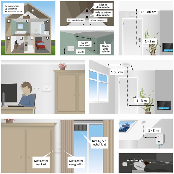De koolmonoxidemelder alarmeert bij te hoge concentratie koolmonoxide, maar waarschuwt ook al bij lage concentraties.