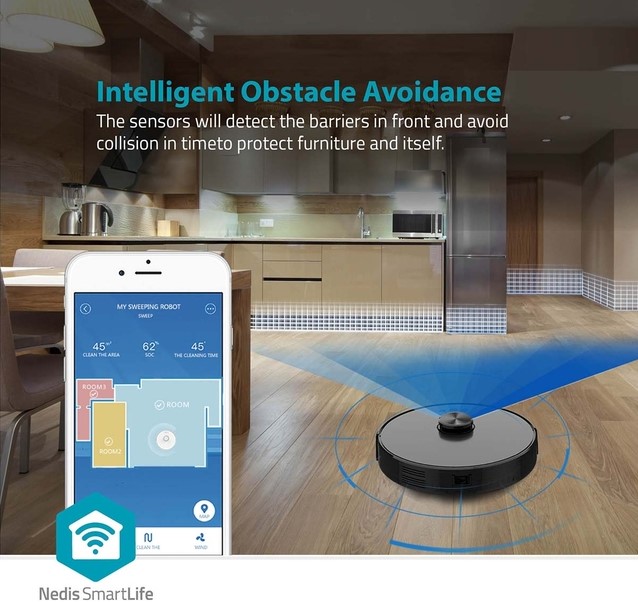Je kunt een dagelijks of wekelijks schoonmaakschema opstellen of hem direct naar een specifieke plek in je huis sturen. Maar door hem in de Nedis SmartLife-app te combineren met andere slimme producten, kun je ook automatisering instellen, zodat de stofzuiger automatisch begint te stofzuigen nadat je het huis hebt verlaten, of nadat je 's avonds de lichten hebt uitgedaan.