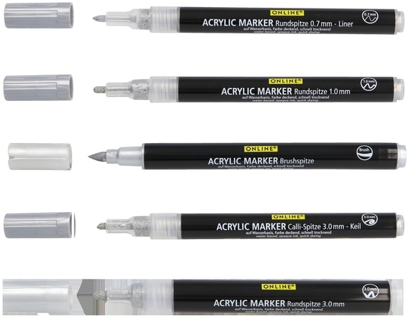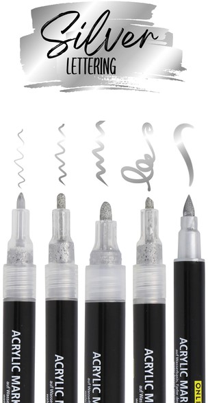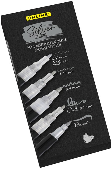 Acrylmarker Online lettering 5 breedtes zilver