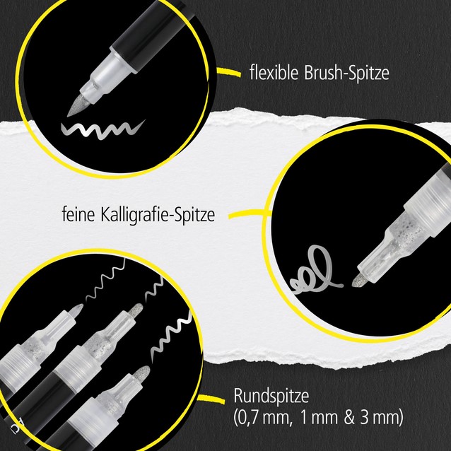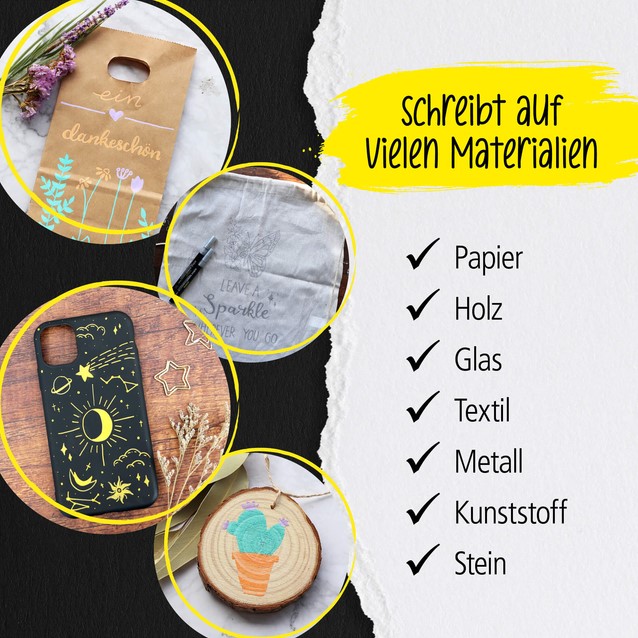Geschikt voor gebruik op papier, karton, zwart papier en meer