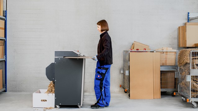 De HSM ProfiPack ecoChip maakt van gebruikte kartonnen dozen verpakkingsmateriaal - ideaal voor het verzenden van niet-breekbare producten