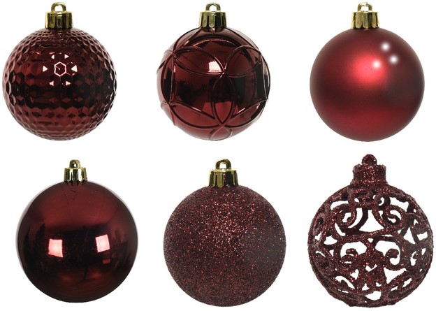 Kerstballen Decoris assorti ossenbloed-rood koker à 37 stuks