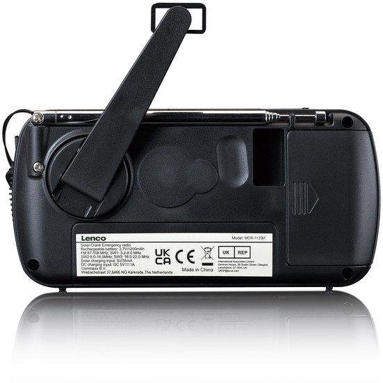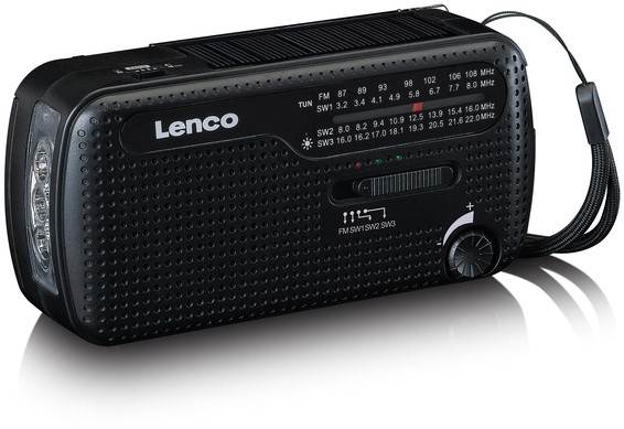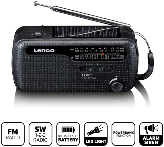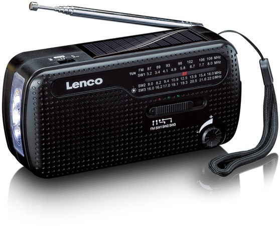 Deze MCR-113BK noodradio van Lenco is een alles-in-één draagbare radio met meerdere praktische functies. De radio kan namelijk ook gebruikt worden als zaklamp of powerbank. Het grootste voordeel van deze radio is dat er geen stopcontact in de buurt hoeft te zijn en dat je geen batterijen nodig hebt. Je kunt namelijk de benodigde stroom zelf genereren door de handslinger te gebruiken of het zonnepaneel bovenop de radio om hem op te laden. Mocht er toch stroom in de buurt zijn, dan is het ook mogelijk om de Lenco MCR-113BK op te laden met een USB-C kabel.