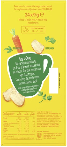 In een verpakking Cup-a-Soup Kip zitten 24 heerlijke zakjes Cup-a-Soup.