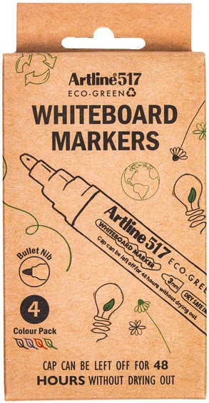 Whiteboardmarker Artline 517 Dry Safe Eco rond medium ass 4 stuks
