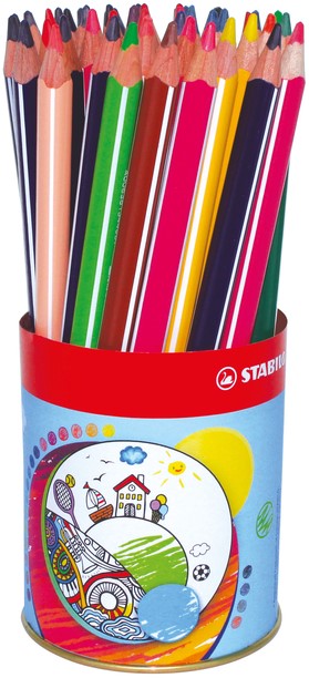 Het STABILO Trio Thick kleurpotlood is ideaal voor kleine kinderen. De dikke driekantige vorm van het potlood biedt een ontspannen grip en moedigt kinderen aan de juiste schrijfhouding aan te nemen. De kleuren zijn zeer intens en de potloden geven zeer gemakkelijk veel kleur af. Driehoekig kleurpotlood STABILO Trio thick metaal drum met 38 potloden.