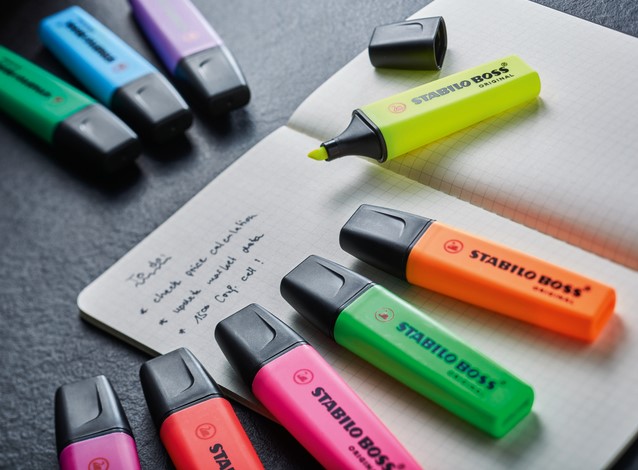 Markeer teksten als een BOSS met Europa’s nummer 1 markeerstift: sinds de introductie in 1971, is de STABILO BOSS ORIGINAL een populaire keuze voor thuis, op school of het werk. Kan tot 4 uur zonder dop zonder uit te drogen. Heb je een drukke dag? Geen probleem als je even vergeet de dop erop te doen. Zo kun je geconcentreerd werken. Markeer en onderstreep in 2 lijndiktes dankzij de beitelpunt. STABILO Big BOSS pack met 48 markeerstiften in 5 fluo kleuren.