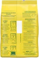 Een zak bevat 40 servings. Eén serving is goed voor één mok kippensoep van 140 milliliter.