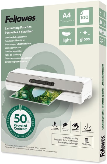 Lamineerhoes Fellowes A4 light 50% gerecycled glans 100stuks