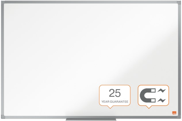 Magnetisch emaille whiteboard met een geanodiseerd aluminium frame. Bevestigd aan de wand door hoekmontage en voorzien van een pennengoot. Het magnetische emaille whiteboard oppervlak biedt een superieur niveau van uitwisbaarheid en duurzaamheid voor regelmatig gebruik.