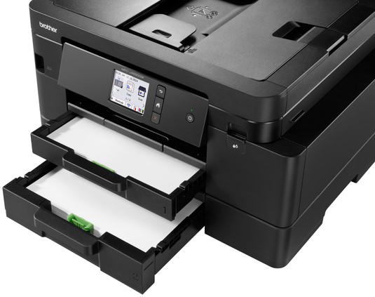 Met een 20-vel automatische documentinvoer (ADF) wordt het scannen, kopiëren of faxen van meerdere pagina’s kinderspel. Of u nu via WiFi (inclusief 5GHz) werkt of via bekabelde Ethernet-netwerkverbinding: de MFC-J4550DW is flexibel inzetbaar in moderne kantooromgevingen. De connectiviteit strekt zich uit tot USB, netwerk en mobiel printen, zodat u eenvoudig vanaf uw smartphone of tablet kunt werken.