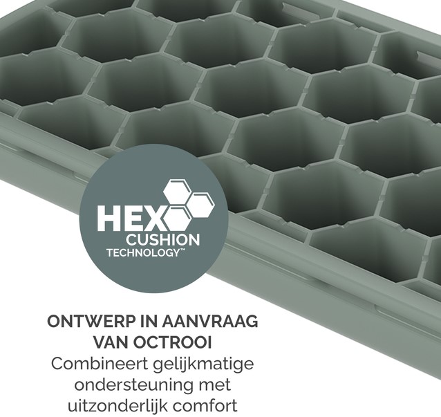 De HEX Cushion Technology™, waarvoor patent is aangevraagd, zorgt voor gelijkmatige ondersteuning en comfort tijdens het typen.