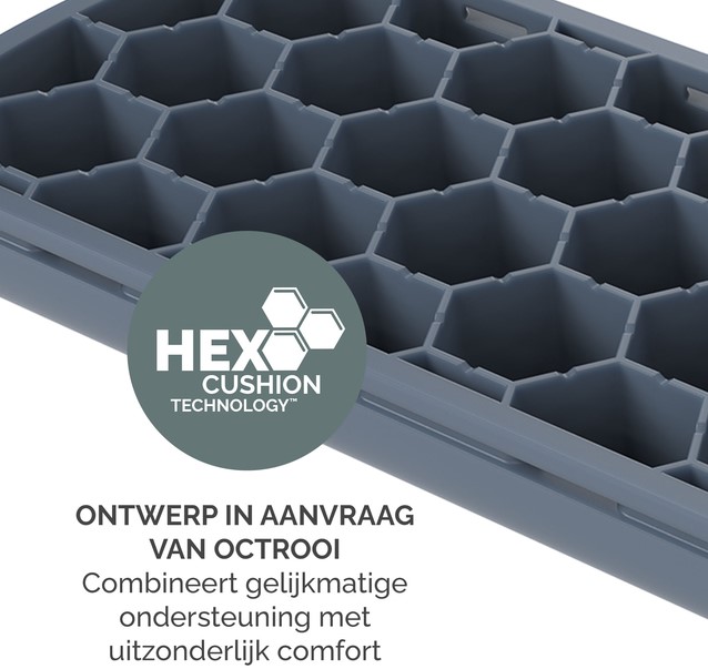 De HEX Cushion Technology™, waarvoor patent is aangevraagd, zorgt voor gelijkmatige ondersteuning en comfort tijdens het typen.