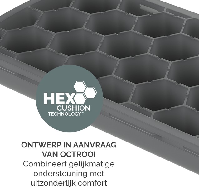 De HEX Cushion Technology™, waarvoor patent is aangevraagd, zorgt voor gelijkmatige ondersteuning en comfort tijdens het typen.