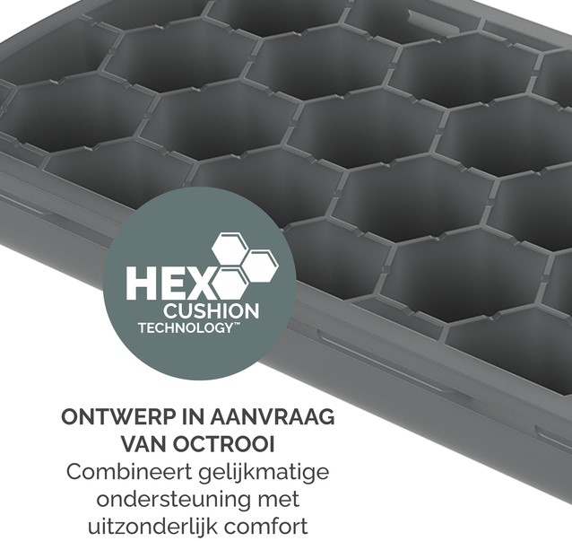 De HEX Cushion Technology™, waarvoor patent is aangevraagd, zorgt voor een gelijkmatige ondersteuning en supercomfort tijdens het muisgebruik.