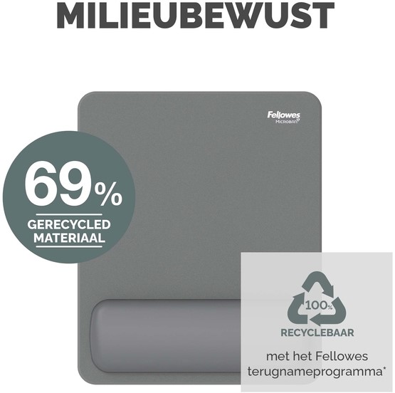 Gemaakt van 69% gerecycled materiaal en 100% recyclebaar met het terugnameprogramma van Fellowes.