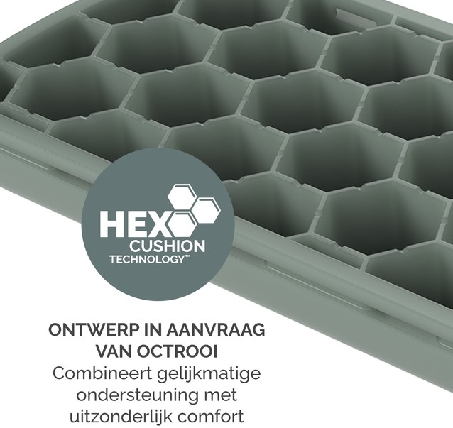 De HEX Cushion Technology™, waarvoor patent is aangevraagd, zorgt voor gelijkmatige ondersteuning en comfort tijdens het typen.