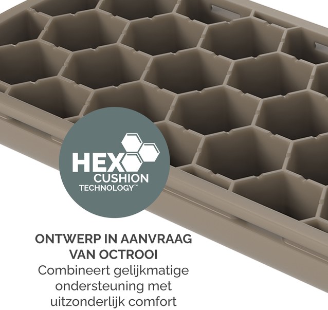 De HEX Cushion Technology™, waarvoor patent is aangevraagd, zorgt voor gelijkmatige ondersteuning en comfort tijdens het typen.