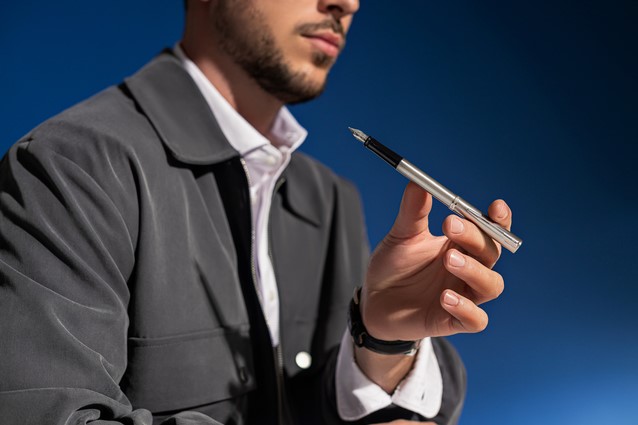 Maak indruk met Waterman Impression, waar verfijnd Frans vakmanschap en zelfverzekerde elegantie samenkomen. De slanke huls en dop, afgewerkt met geborsteld roestvrij staal, komen samen om een elegante en blijvende indruk te creëren. De Impression is voorzien van een brede, met palladium gecoate dop met ring en de kenmerkende dubbelvertakte clip van Waterman, en is ontworpen om vanaf de allereerste beweging tot gedurfde expressie te verleiden. De roestvrijstalen penpunt, gegraveerd met Watermans iconische gekrulde 'W', zorgt voor een soepele, nauwkeurige inktstroom, ideaal voor dagelijks gebruik. Met zijn zorgvuldig uitgebalanceerde gewicht ligt de pen comfortabel in de hand, waardoor een gevoel van evenwicht en controle wordt geboden. Impression is vervaardigd in Frankrijk en weerspiegelt meer dan 140 jaar vakmanschap van Waterman. Hij wordt geleverd in de kenmerkende geschenkverpakking van Waterman en is het ideale pronkstuk - voor uzelf of iemand die altijd een blijvende indruk achterlaat.