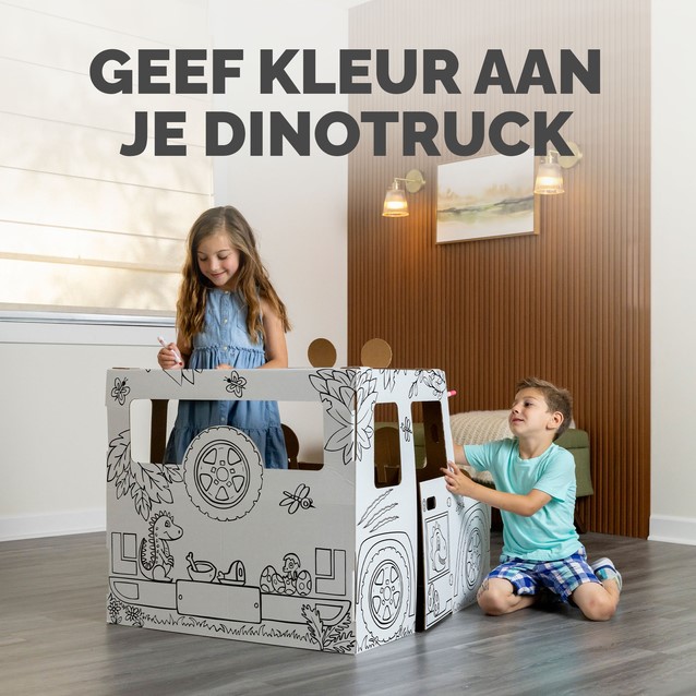 Brul het avontuur tegemoet met een inkleurbare dinosaurustruck!