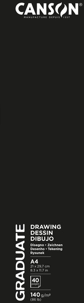 Canson Graduate Sketch & Drawing is een A4 tekenboek met soepele zwarte cover, geniet met 20 vel wit lichtgekorreld papier 140 gr.