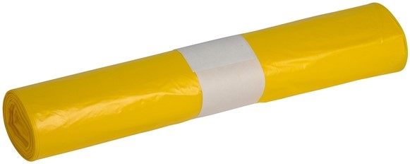 Gele afvalzakken zonder trekband met een inhoud van 120 liter.
