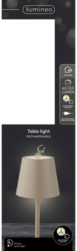 Tafellamp Lumineo led oplaadbaar steady buiten bruin