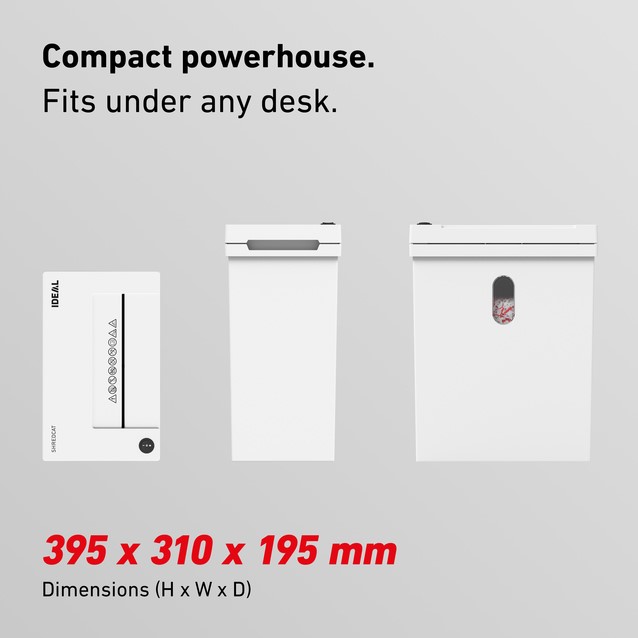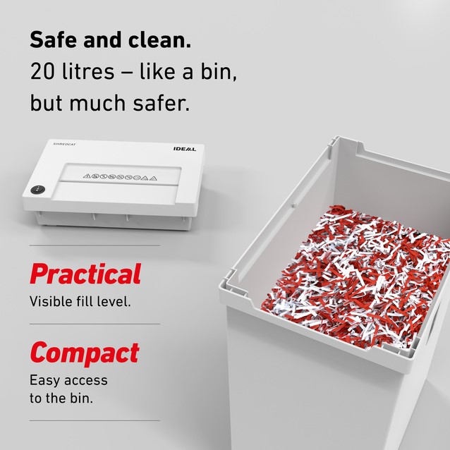De IDEAL Shredcat 8100 is een compacte en betrouwbare papiervernietiger voor dagelijks gebruik op de werkplek. Dankzij de cross-cut versnippering (veiligheidsniveau P-4) is dit model geschikt voor het veilig vernietigen van vertrouwelijke documenten zoals personeelsgegevens en interne rapporten. Door het stille functioneren en het compacte formaat is de Shredcat 8100 ideaal voor thuiswerkplekken en kleine kantooromgevingen.