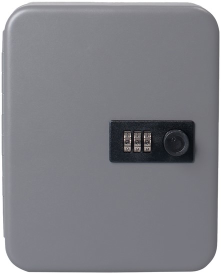 Praktisch, elegante, stalen sleutelkast met cijferslot met 3 draaiknoppen. Het cijferslot beschermt tegen ongeautoriseerde toegang.