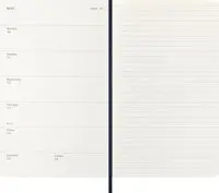 De Moleskine Weekly Notebook Planner is gedateerd van januari tot december. Het is een handige en veelzijdige planner die de vrijheid van een notitieboekje bevat en is ingedeeld met de afspraken van de week aan de linkerkant en een gelinieerde pagina voor notities op de rechter bladzijde. Het notitieboekje is beschikbaar met een harde of een zachte kaft met afgeronde hoeken en een elastische sluiting. - Harde of Zachte kaft - Afgeronde hoeken - Elastische sluiting - Moleskine ivoorkleurig papier - Papiergewicht: 70 g/m² - Handige tools: planning, tijdzones, internationale metingen, toegangscodes en vluchtduur - Uitbreidbaar binnenvak passend bij de kleur van het notebook - "In geval van verlies" label gedrukt op het schutblad - Bijpassende bladwijzer voor lint - Herbruikbare paperband B-SIDE met extra gedrukte tools - 180° liggende opening - Moleskine srl. creëert en verkoopt FSC-gecertificeerde producten