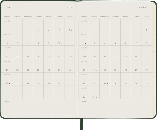 Agenda 2027 Moleskine 12M Planner Weekly 7dagen/1pagina large hc myrtle green