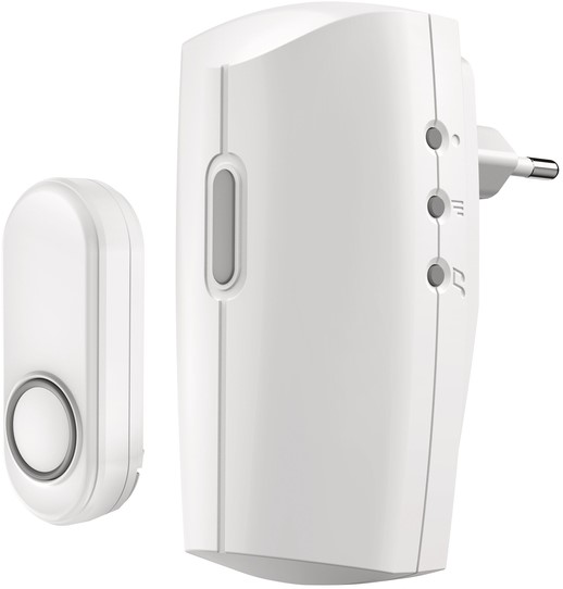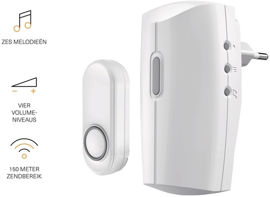 Stekkerdeurbelset KlikAanKlikUit ACDB-8000AC Met deze draadloze stekkerdeurbelset zorg jij ervoor dat je nooit meer een bezoeker mist. Je plaatst de plug-in deurbel eenvoudig in elk gewenst stopcontact in huis, terwijl je de waterdichte drukknop bij de voordeur, garage of schuur bevestigt. Zo hoor jij overal direct wanneer er wordt aangebeld. De installatie is verrassend eenvoudig. Je steekt de deurbel in het stopcontact, koppelt de drukknop met één druk op de knop en het systeem is direct klaar voor gebruik. Geen ingewikkelde bedrading, maar direct gemak en betrouwbaarheid. Je kiest uit zes verschillende melodieën en stelt eenvoudig het volume in naar jouw voorkeur. Of je nu een subtiele melding wilt of een duidelijk hoorbare bel, jij bepaalt hoe je gewaarschuwd wordt. Dankzij de flexibele plaatsing gebruik je deze deurbel precies waar jij hem nodig hebt. Met deze slimme oplossing combineer jij gebruiksgemak, flexibiliteit en zekerheid in één compacte deurbelset. Ideaal voor elk huishouden waar comfort en betrouwbaarheid voorop staan. Kenmerken: