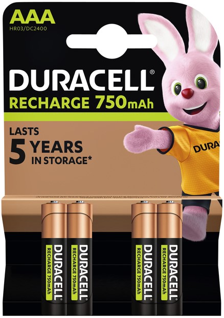 Batterij oplaadbaar Duracell 4x AAA 750mAh Plus