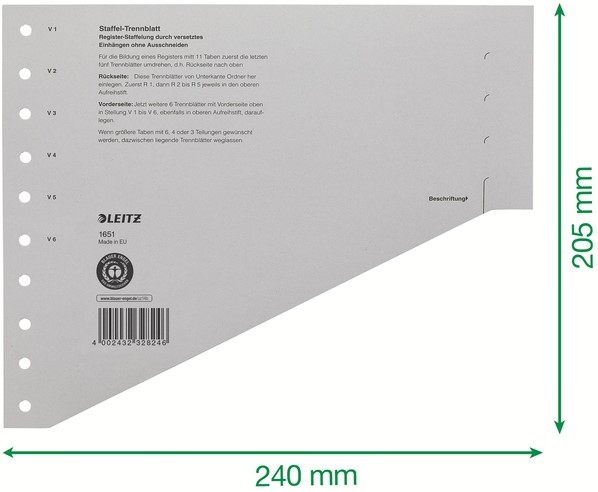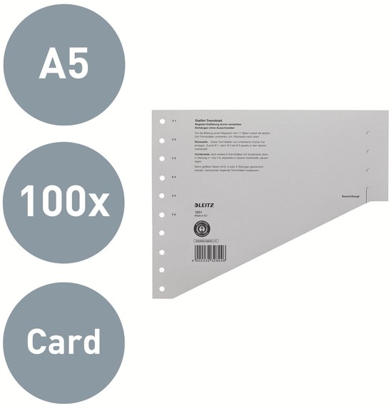 Scheidingsbladen Leitz A4 karton 230gr 6-gaats grijs 100 stuks