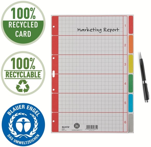 Tabbladen Leitz 4-gaats 4350 6-delig grijs karton