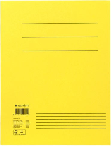 Door (leverproblemen) leveren we momenteel een alternatief zonder opdruk uit. Afbeelding wijkt af van de werkelijkheid Kies voor duurzaamheid en kwaliteit met de dossiermap Quantore A4 250gr geel. Deze stevige map is vervaardigd uit 250 grams gerecycled manillakarton en biedt optimale bescherming voor je documenten. Dankzij de drie stofkleppen blijven losse papieren netjes op hun plaats, ideaal voor gebruik in archieven, kantoren of thuis. De map voldoet aan de Blauwe Engel- en FSC-certificeringseisen, wat garant staat voor milieuvriendelijk materiaalgebruik. Met het A4-formaat is de map perfect afgestemd op standaarddocumenten. Verpakt per 5x10 stuks in een omdoos – klaar voor intensief gebruik. Kenmerken:
