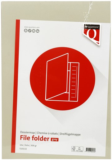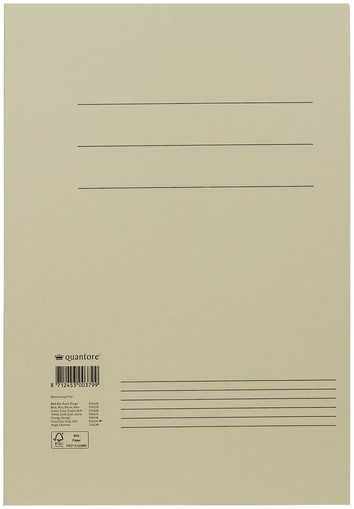 Door (leverproblemen) leveren we momenteel een alternatief zonder opdruk uit. Afbeelding kan afwijken van de werkelijkheid Berg je documenten overzichtelijk en verantwoord op met de dossiermap Quantore folio 250gr grijs. Gemaakt van extra stevig 250 grams manillakarton, biedt deze map betrouwbare bescherming voor langdurig gebruik. De drie stofkleppen houden losse documenten veilig opgeborgen, ideaal voor archief- en dossierbeheer. De map is vervaardigd uit 100% gerecycled karton en voldoet aan zowel de Blauwe Engel- als FSC-certificeringseisen, wat garant staat voor een milieuvriendelijke keuze. Met een folioformaat is hij perfect voor grotere documenten. Verpakt per 5x10 stuks in een omdoos – geschikt voor professioneel gebruik. Kenmerken: